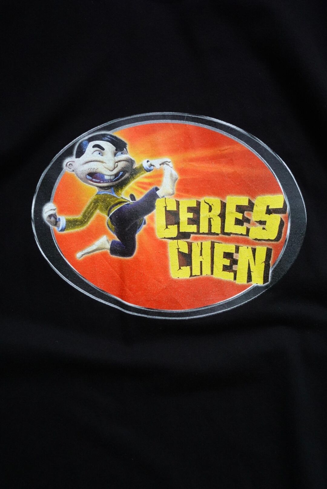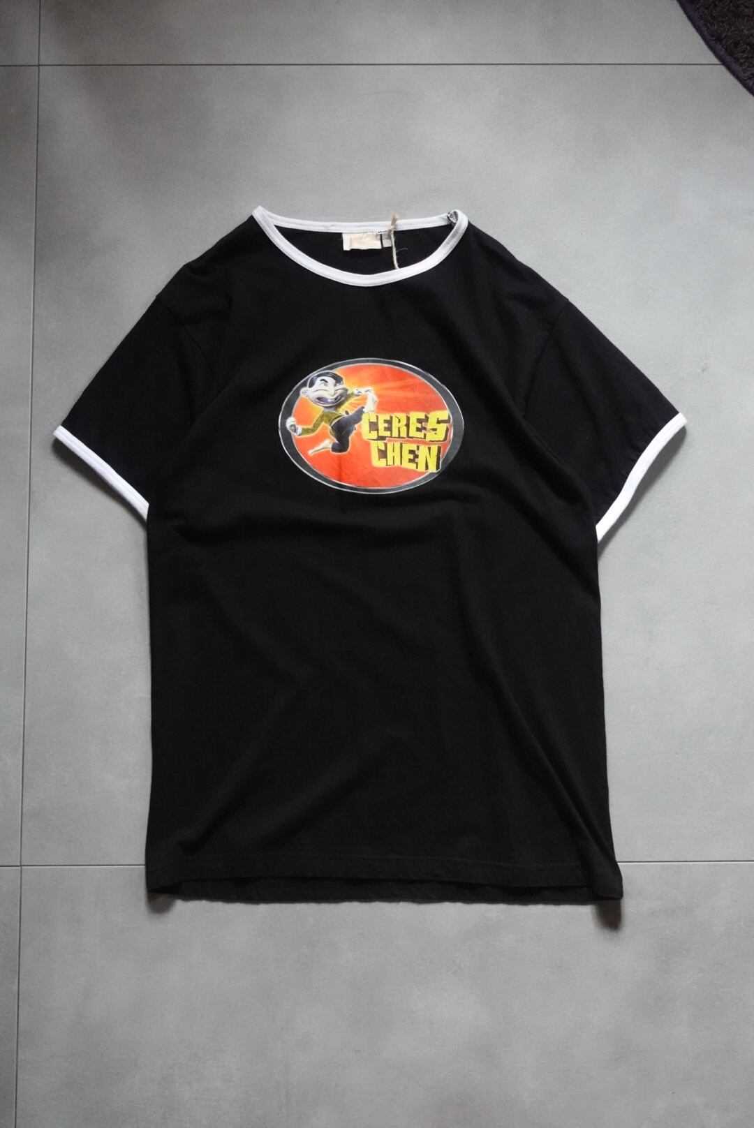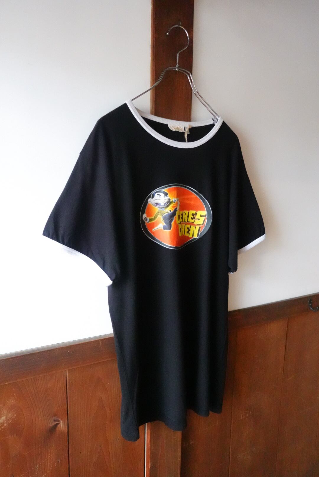 こちらは、ポップなキャラクターと「CERES CHEN」という謎めいたロゴがプリントされたリンガーTシャツ。