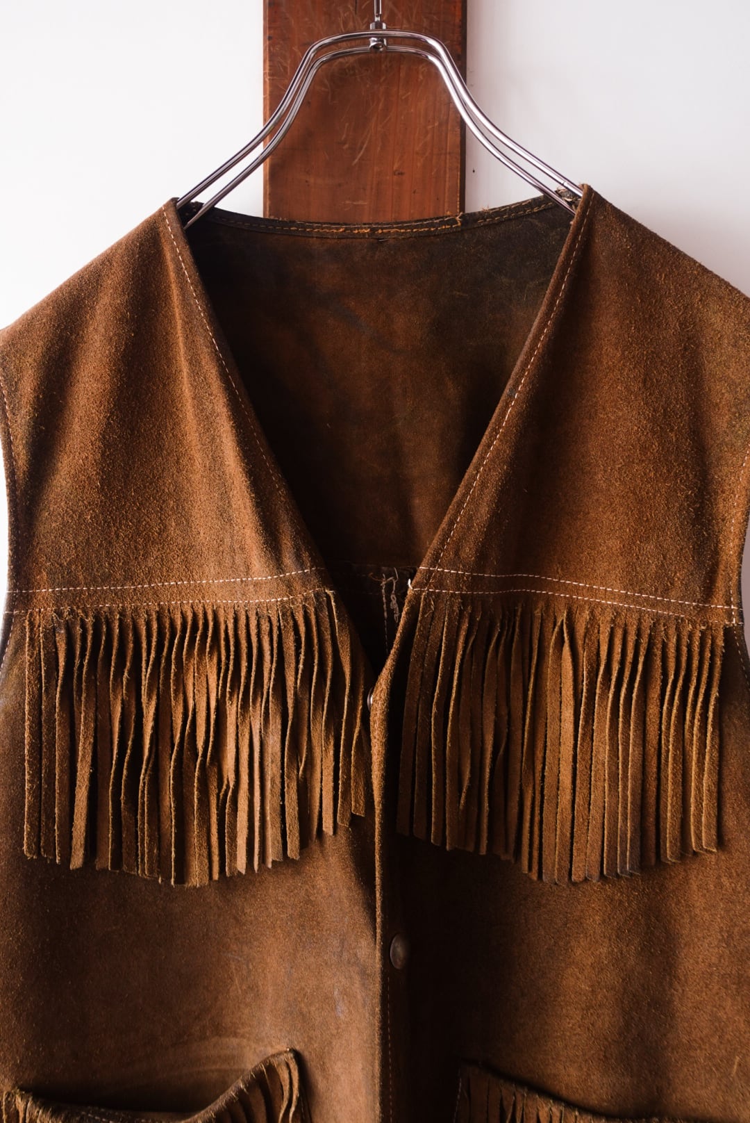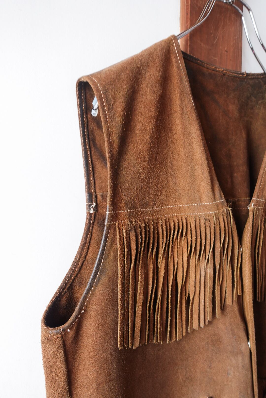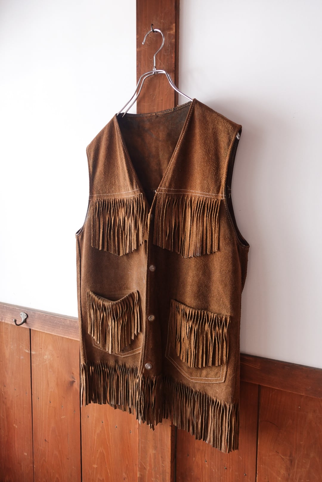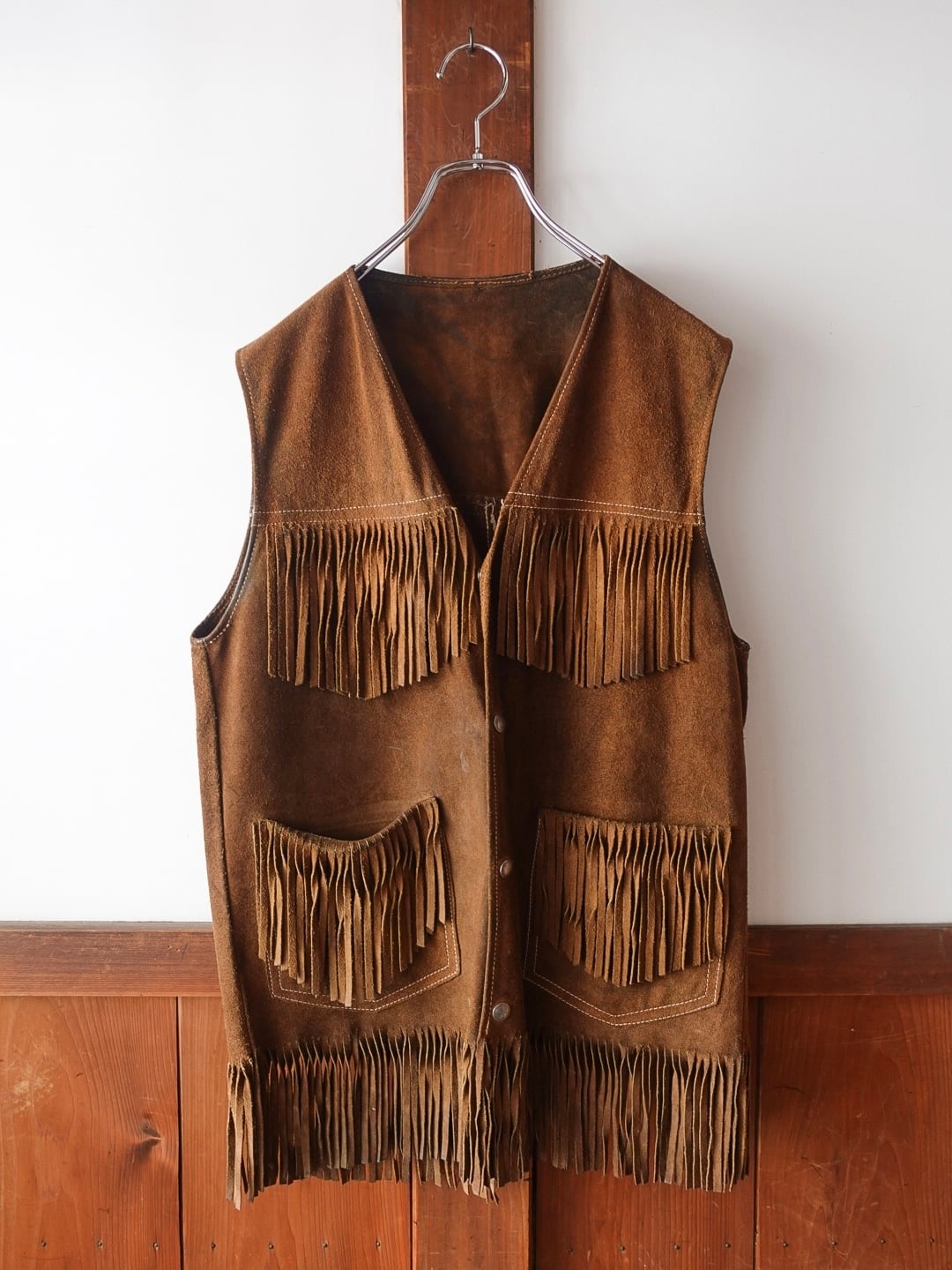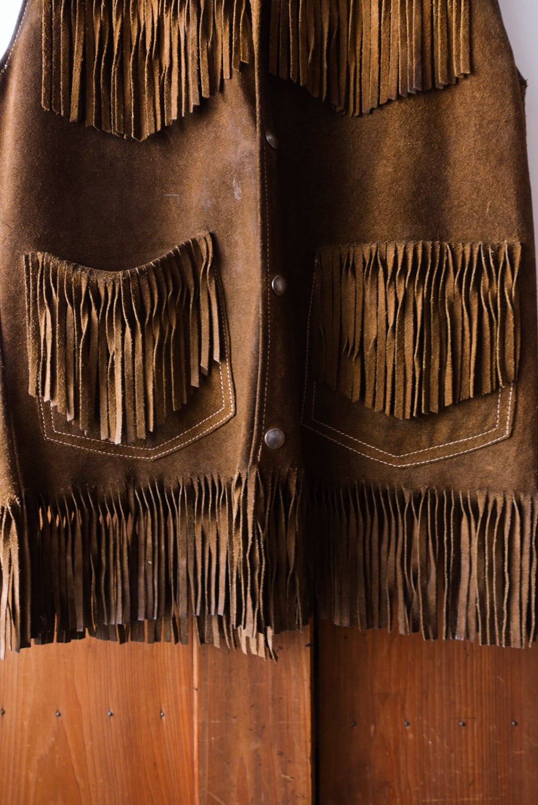 スエードレザー製のフリンジベスト。
