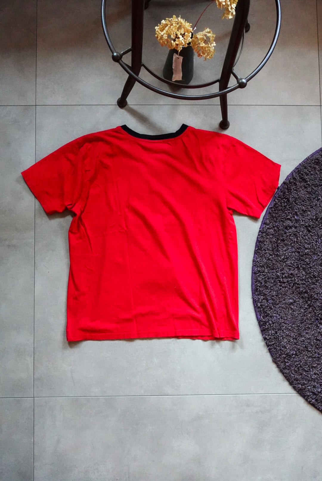 赤×黒の配色が目を引く、パンチの効いたプリントTです。