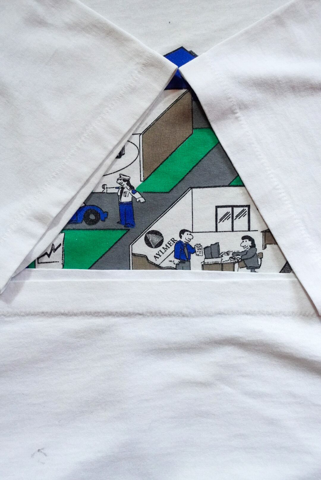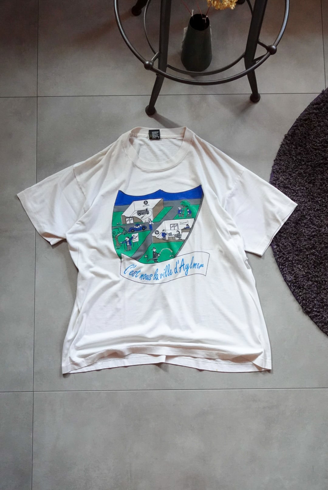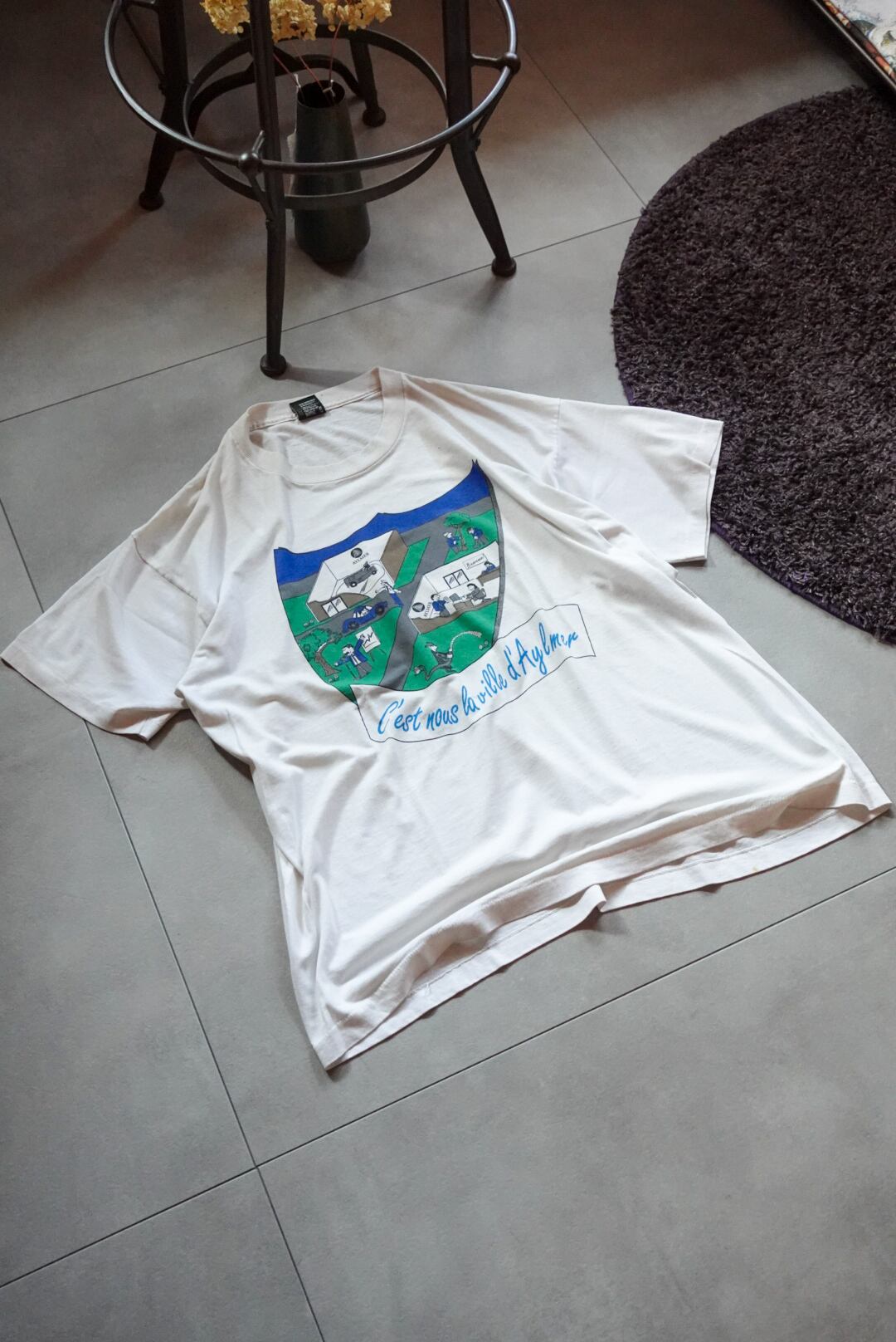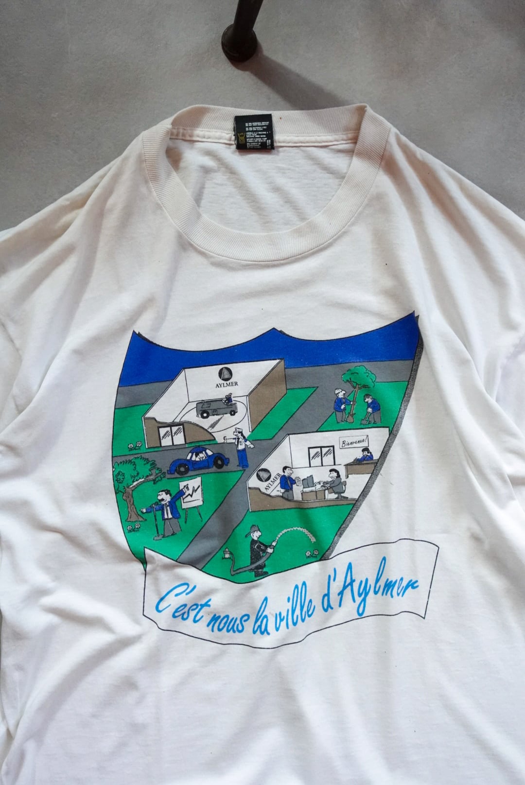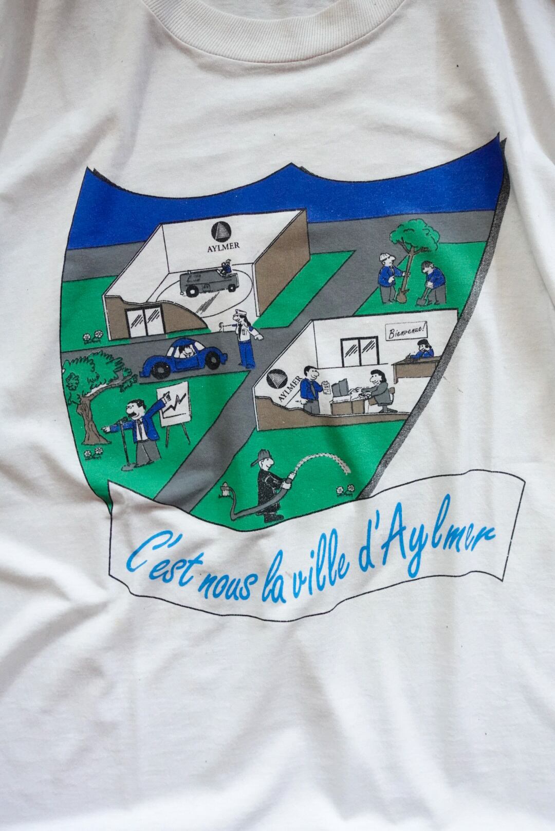 胸には「C’est nous la ville d’Aylmer(これが私たち、エイルマーの町)」のスローガンと、町の日常を描いたユニークなイラスト。