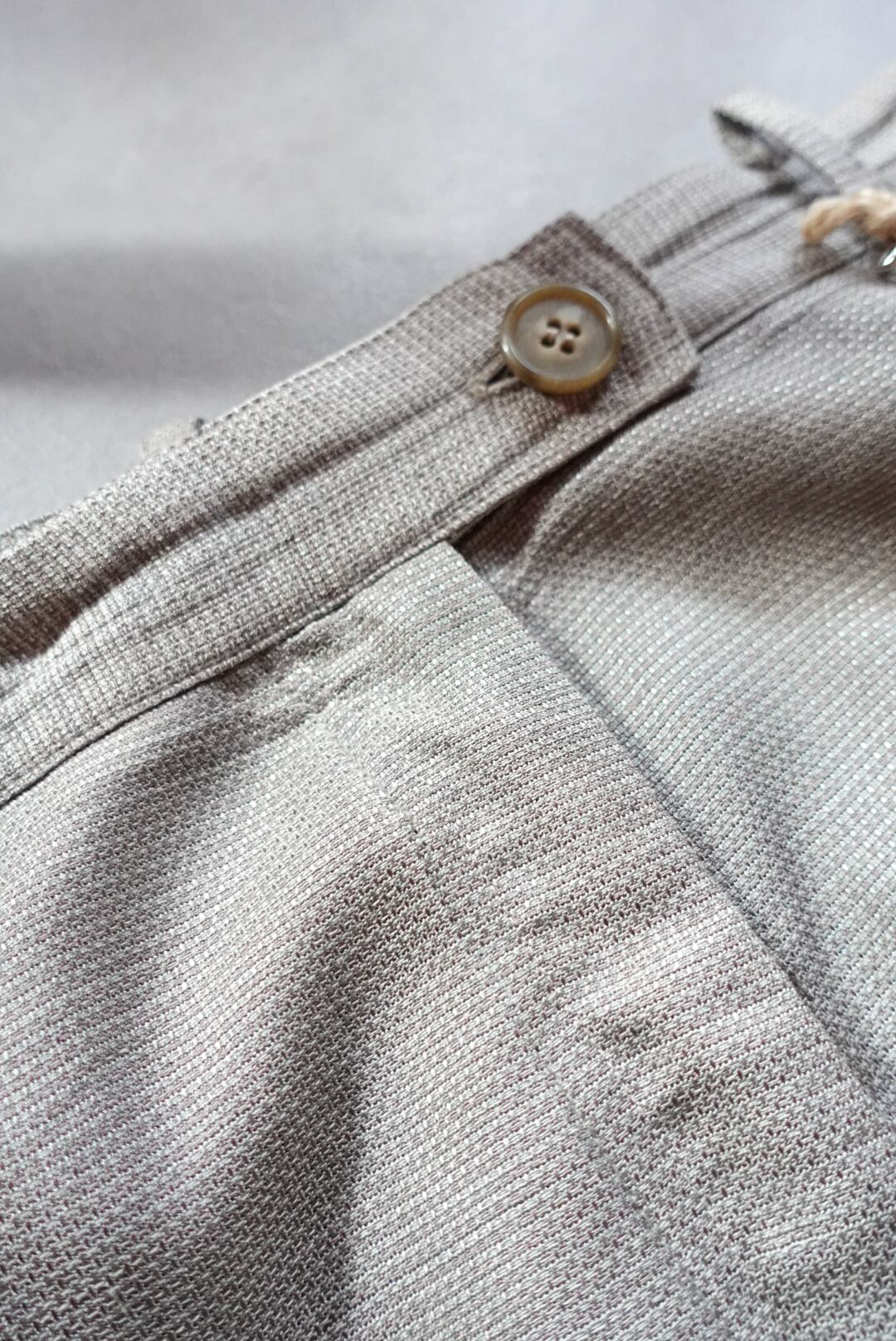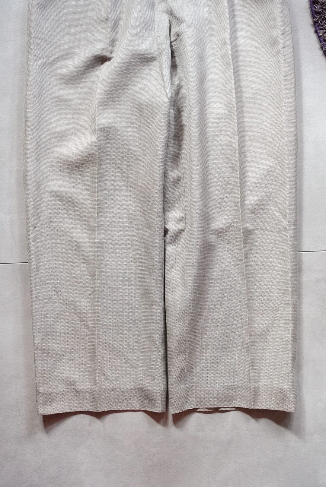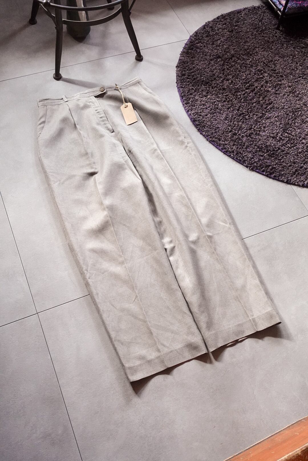 落ち着いたライトグレーのトーンが上品なタックスラックス。