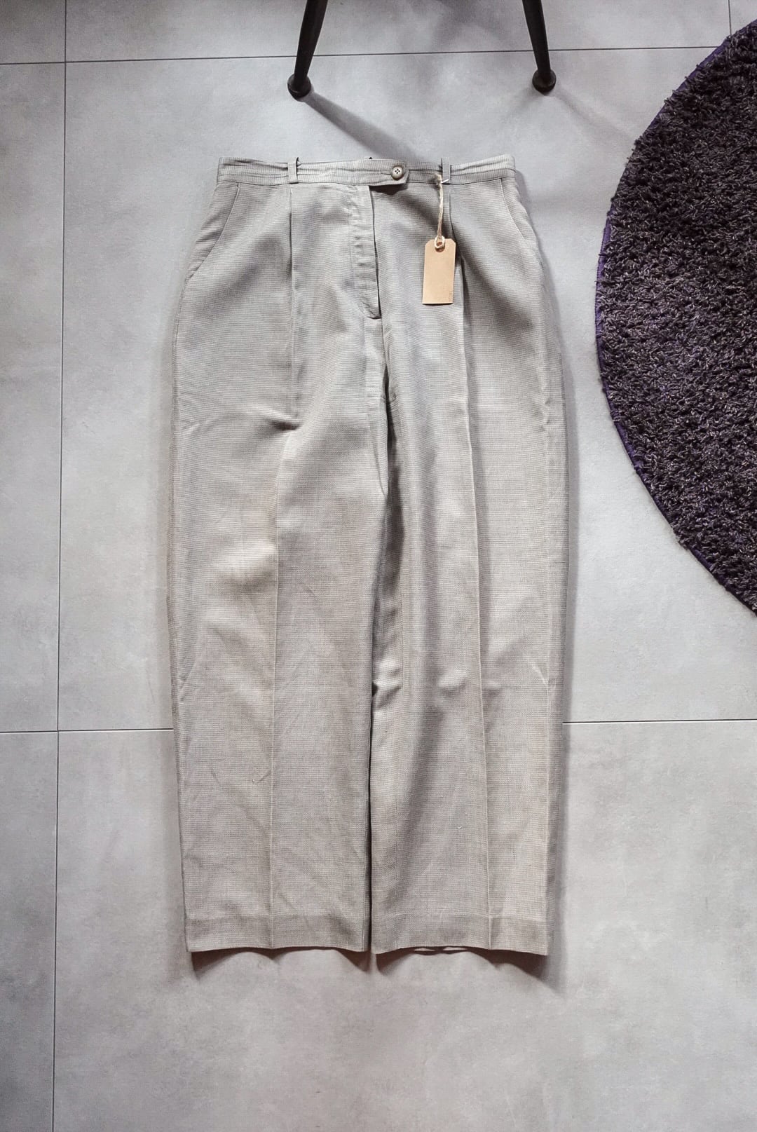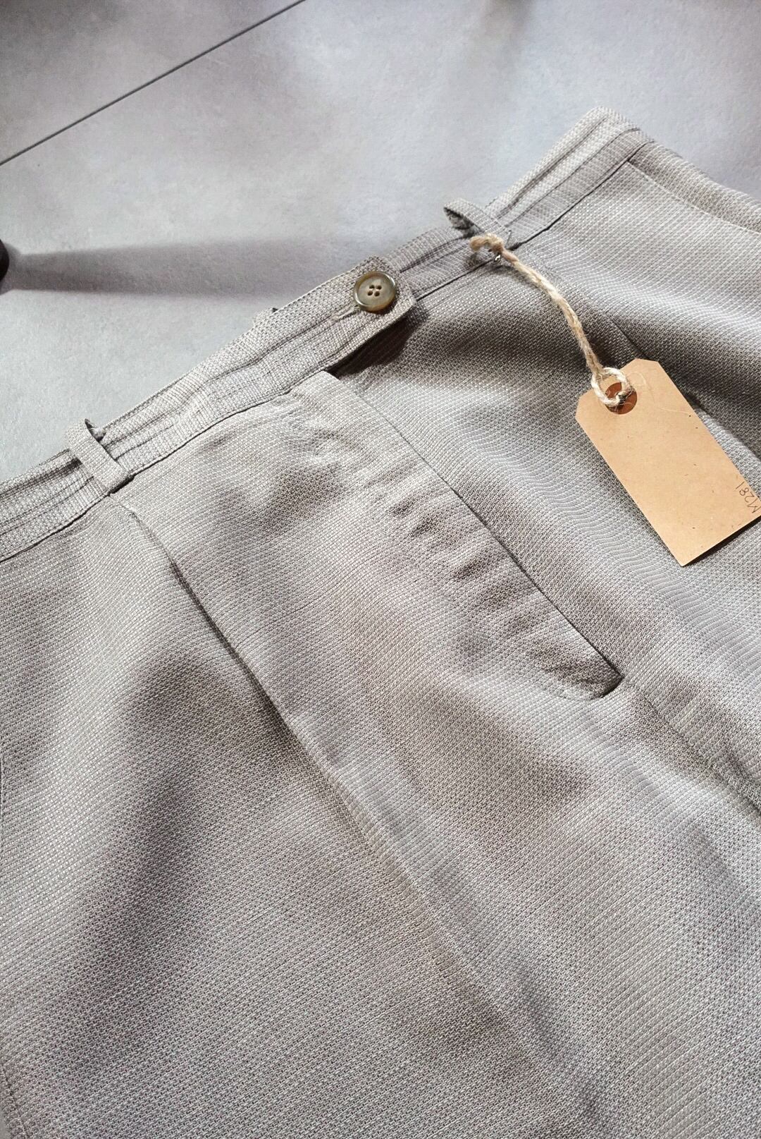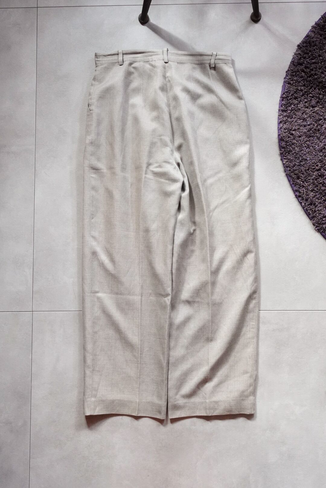 落ち着いたライトグレーのトーンが上品なタックスラックス。