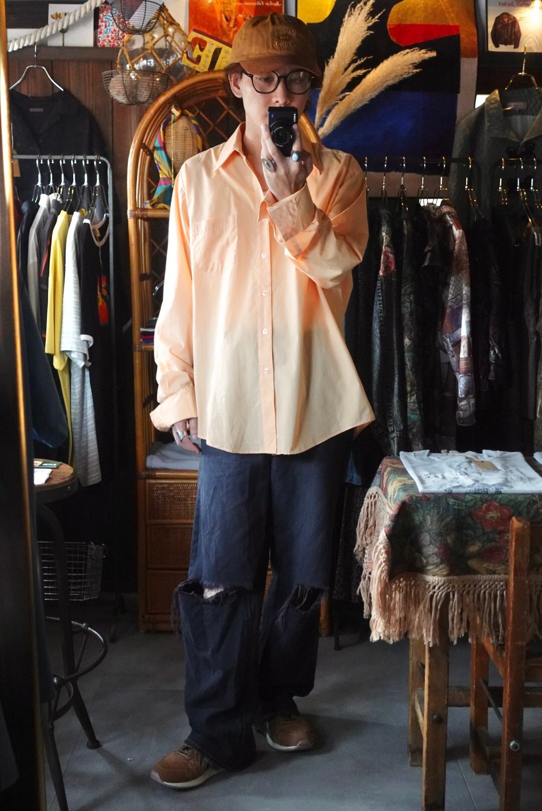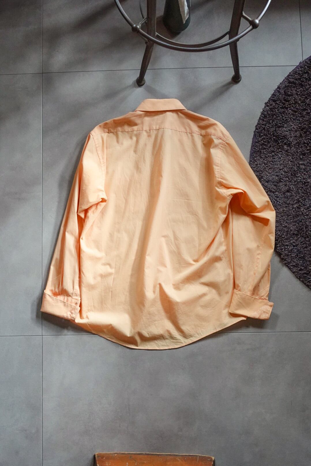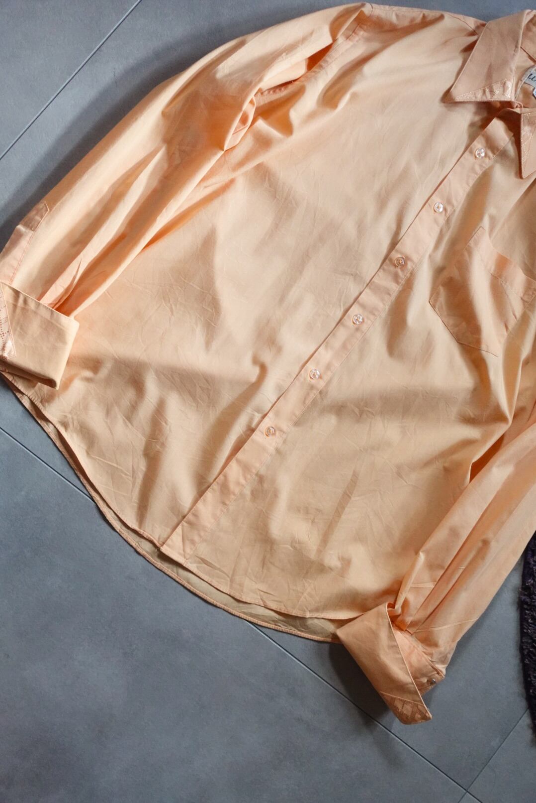 柔らかなオレンジカラーが目を惹くシャツ。