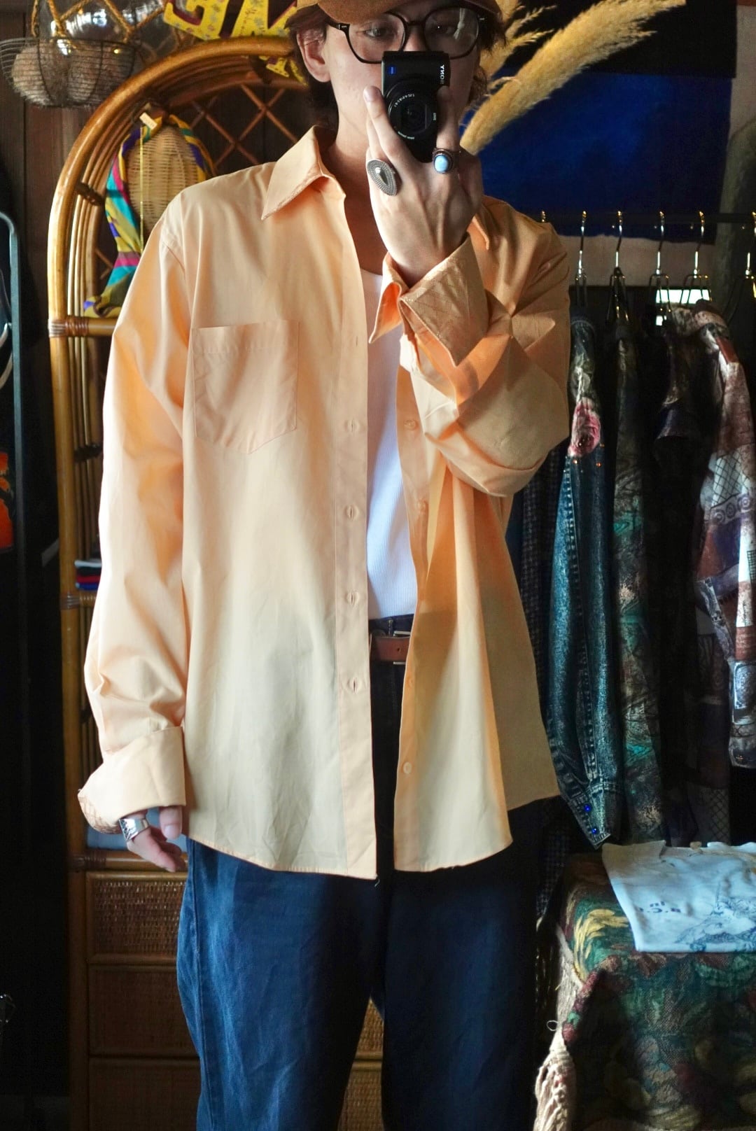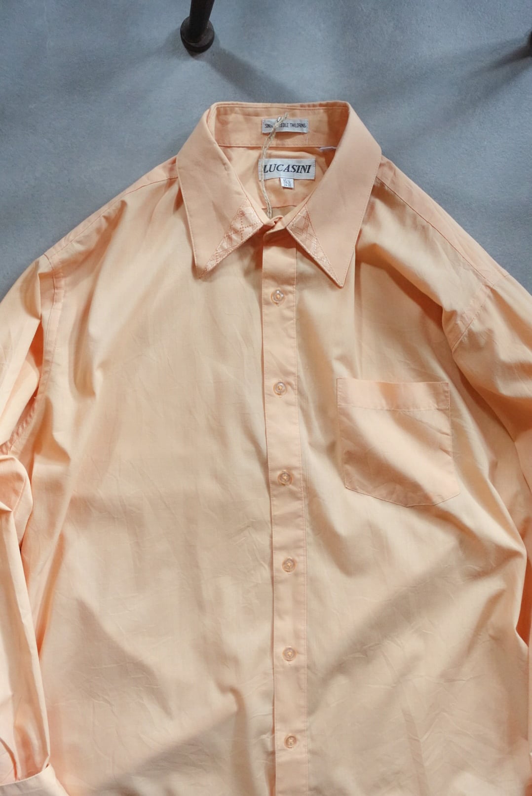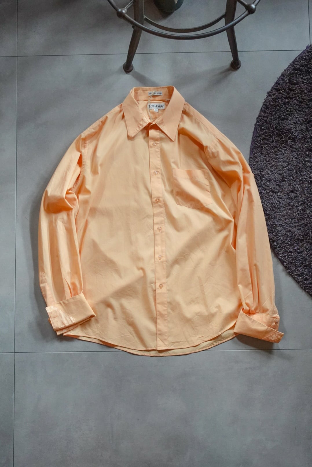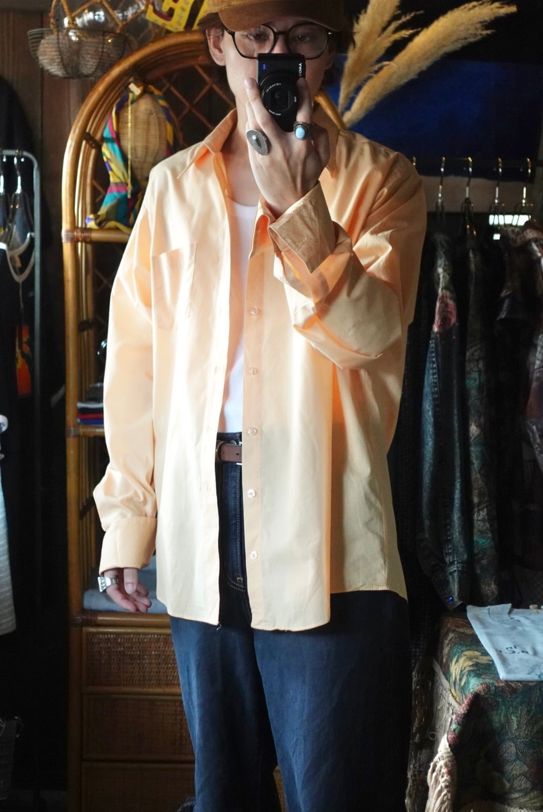 柔らかなオレンジカラーが目を惹くシャツ。
