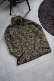 表情豊かな糸で編まれたタートルニット。