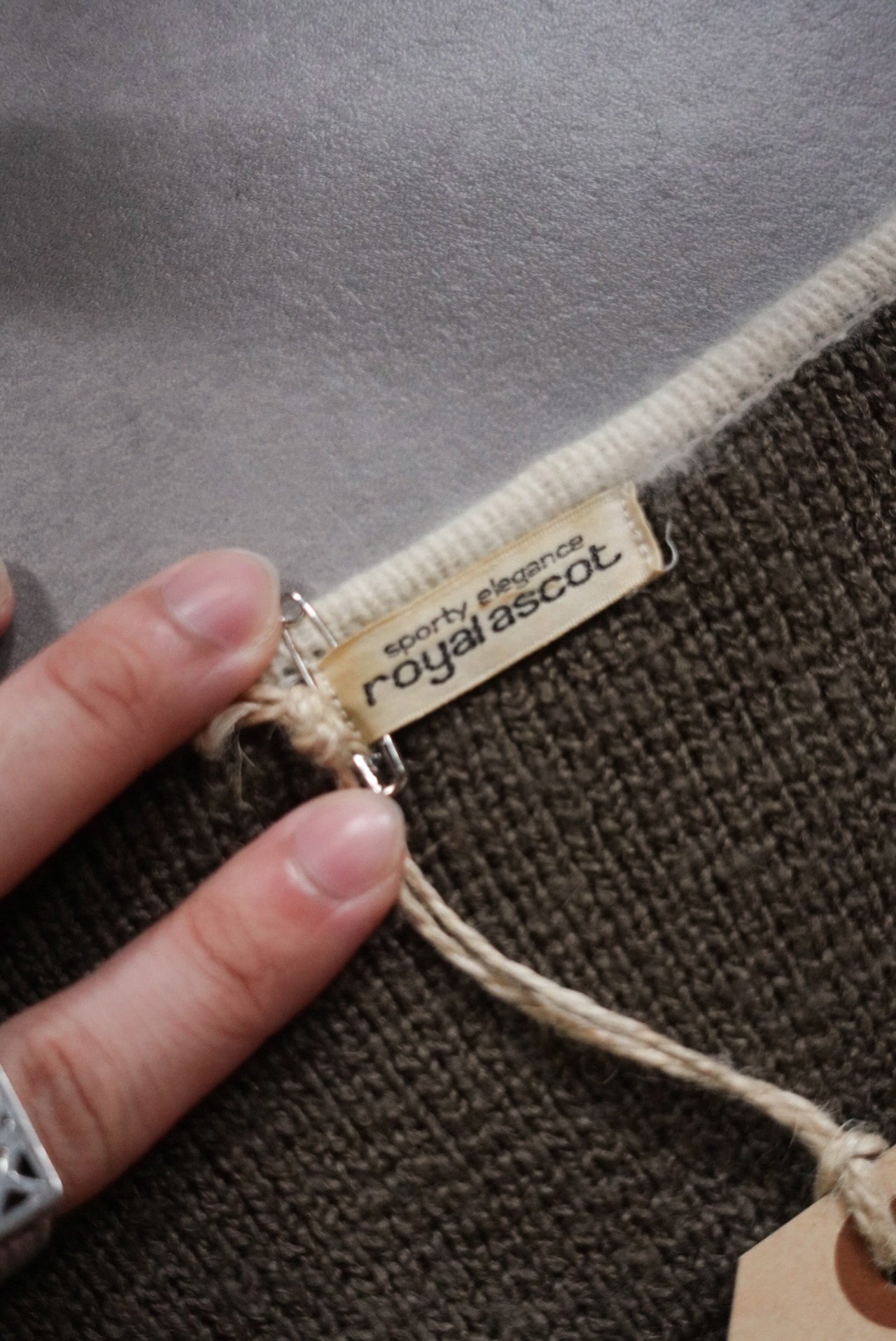 ざらっとした凹凸感のあるニット地は独特の風合いを持ち、シンプルながら存在感のある一枚です。