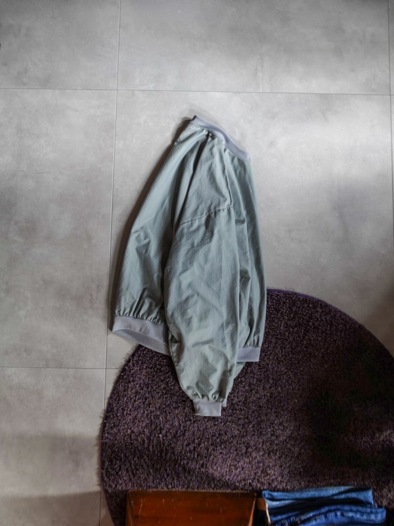 マットな明るいグレー。ふわりとしたシルエット。軽い生地。何をとってもまじで可愛いこの服。自分の物にしたい。でも、みんなの手に渡ってほしい。ぐぬぬ。「テック系、シティ系とは俺のこと!ナイロングレー!」