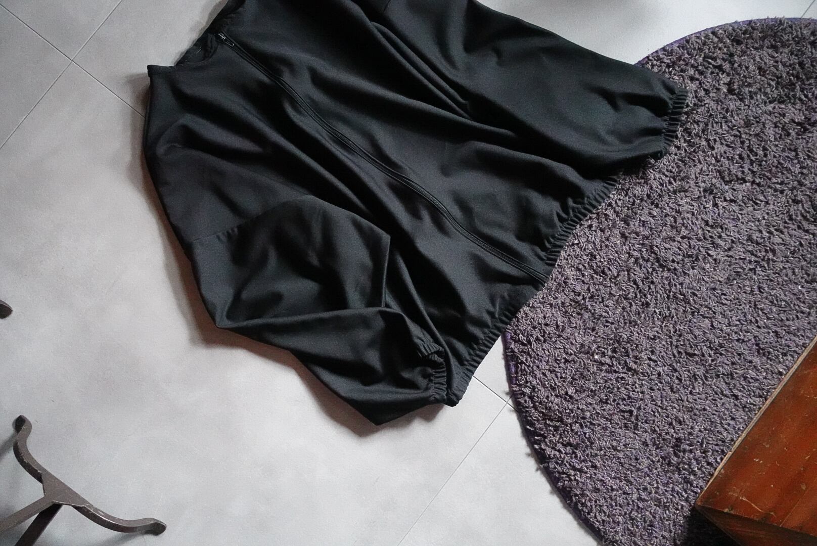 ジャージ素材のノーカラージャケット。サイズはゆったりとしており、とてもワイドな作りです。裾元は軽くリブで絞られておりますが、ゆるふわっと着用して頂けます。