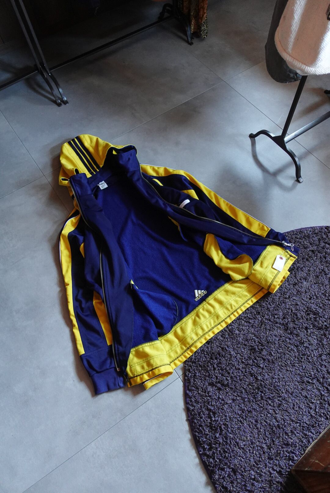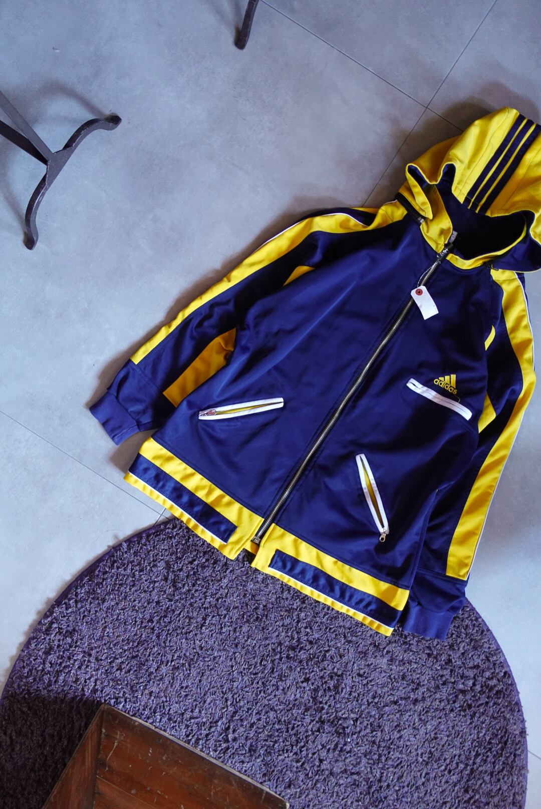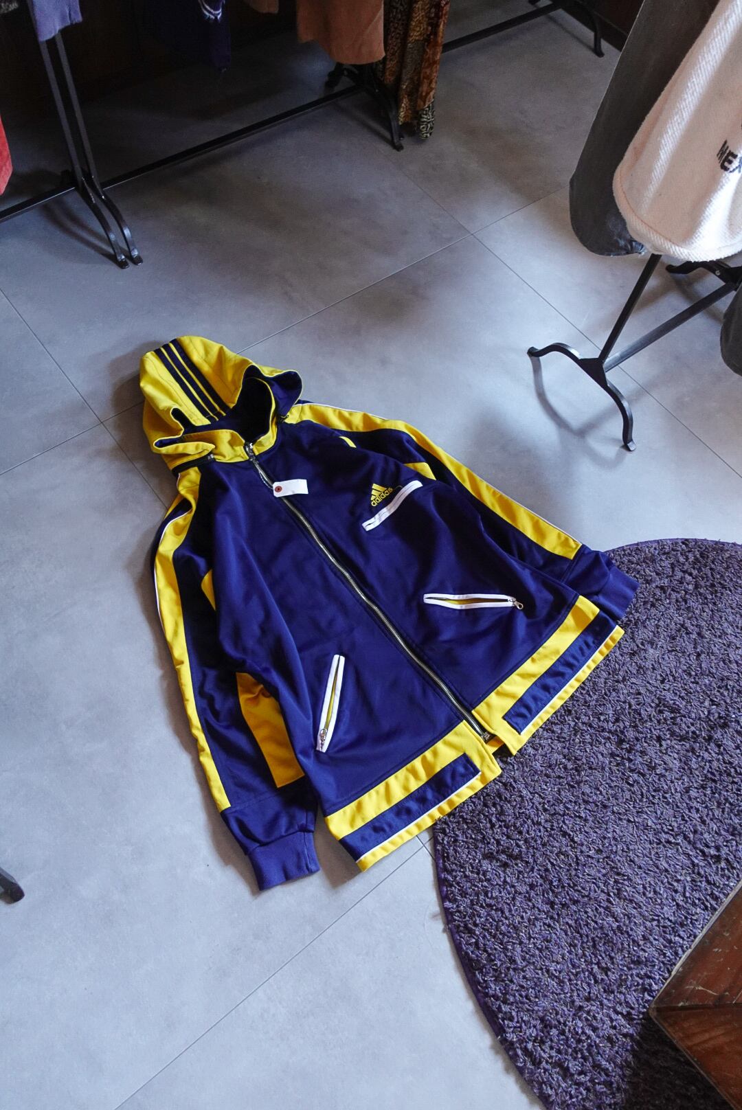 かなり珍しいデザインのトラックジャケット。フードは取り外し可能です。配色も完璧。少し長めの着丈も雰囲気があり、これからの季節にこれを羽織るだけで可愛い1枚です。