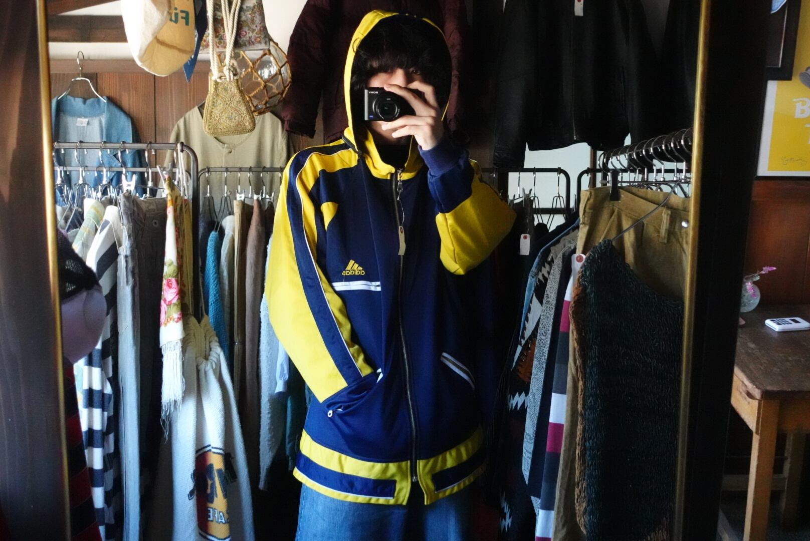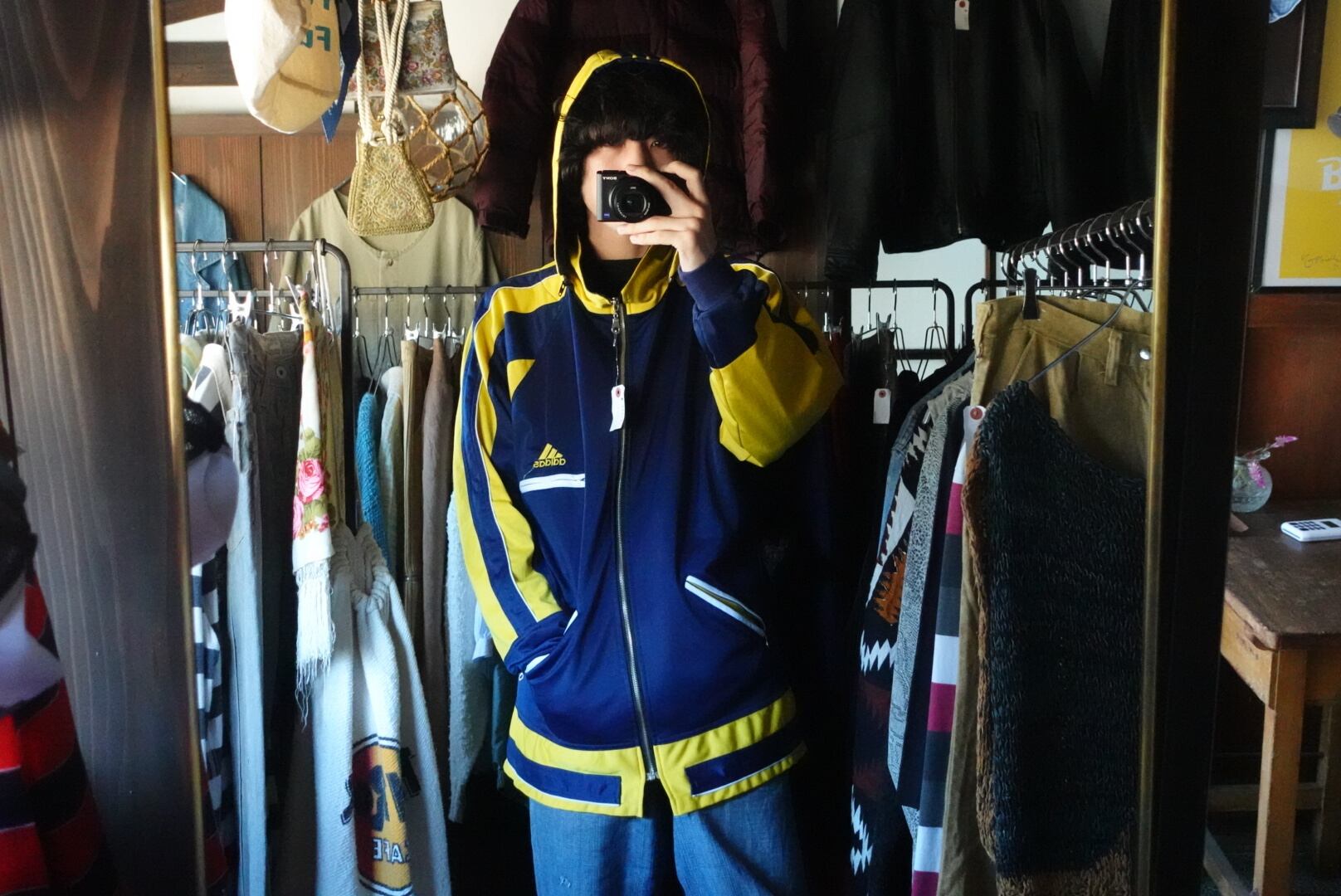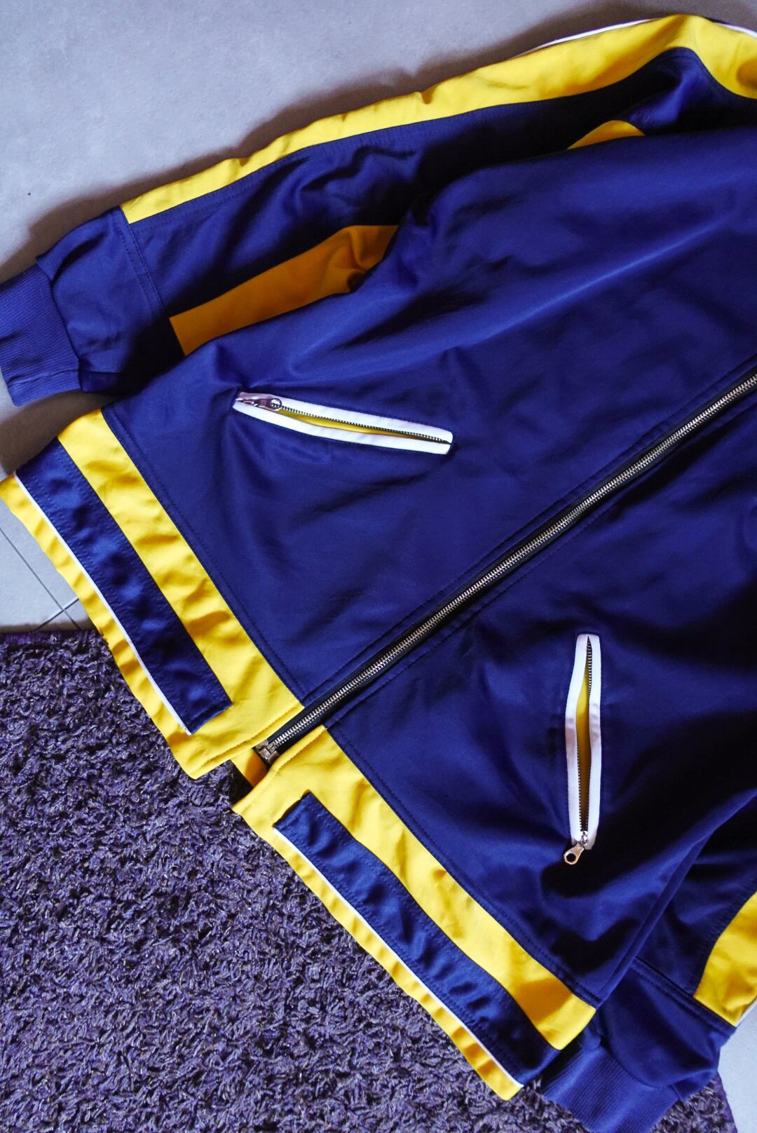 かなり珍しいデザインのトラックジャケット。フードは取り外し可能です。配色も完璧。少し長めの着丈も雰囲気があり、これからの季節にこれを羽織るだけで可愛い1枚です。